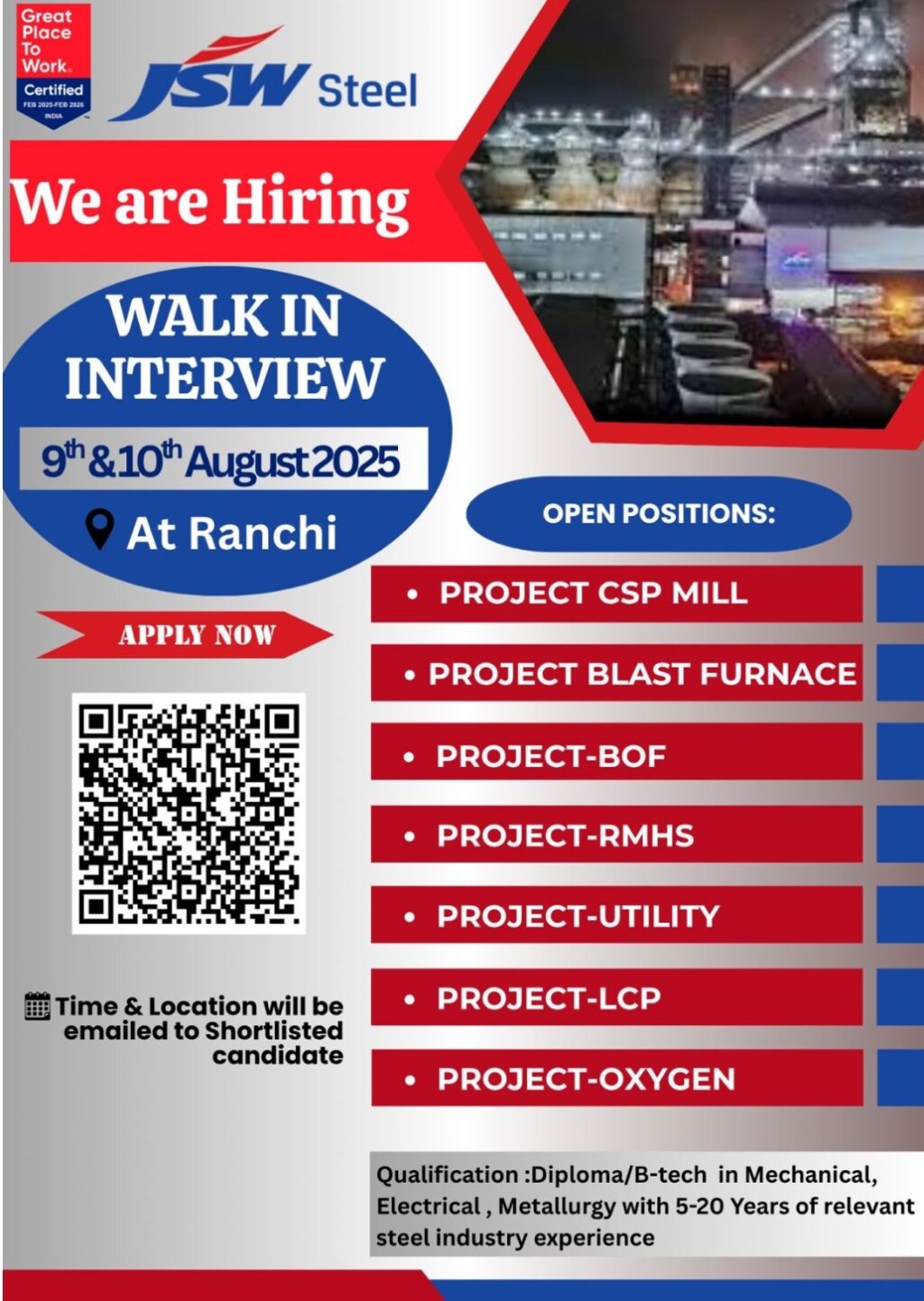Looking for a new opportunity? Come meet us in person -JSW is hosting walk-in interviews and would love to get to know you!